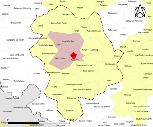 | Marconnelle | 62550 | Pas-de-Calais | commune du pôle principal | 5,55 | 1 076 (2022) | 194 | |