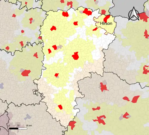 L'aire d'Hirson est une aire départementale qui comporte 26 communes. Hirson en est la commune-centre[4].