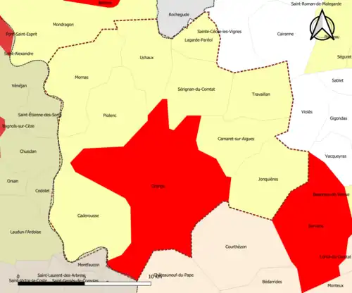 | Uchaux | 84135 | Vaucluse | commune de la couronne | 18,48 | 1 702 (2022) | 92 |
