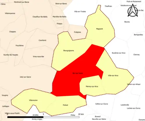 - ↑ « Composition 2010 de l'aire urbaine de Bar-sur-Seine », sur insee.fr (consulté le ).
