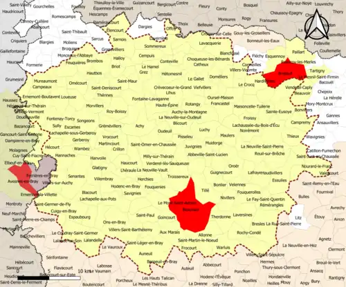 Localisation de l'aire d'attraction de Beauvais dans le département de l'Oise. | |