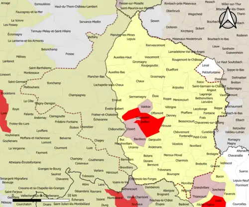 | Nombre de communes | 91 soit 75 (Territoire de Belfort) + 16 (Haute-Saône) |