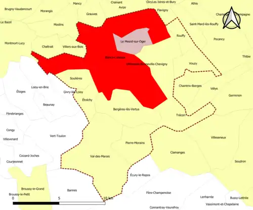 Localisation de l'aire d'attraction de Blancs-Coteaux dans le département de la Marne. | |
