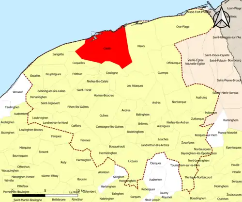 - ↑ « Aire d'attraction de Calais - Code officiel géographique », sur insee.fr (consulté le ).