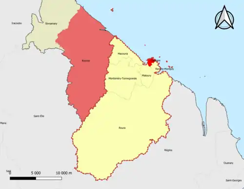 | Montsinéry-Tonnegrande | 97313 | Guyane | commune de la couronne | 600,00 | 3 457 (2022) | 5,8 |
