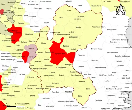 | Verdaches | 04235 | Alpes-de-Haute-Provence | commune de la couronne | 22,92 | 60 (2022) | 2,6 | |
