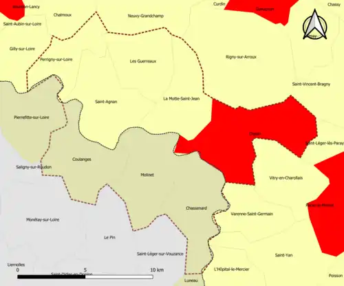 Localisation de l'aire d'attraction de Digoin dans le département de Saône-et-Loire. | |