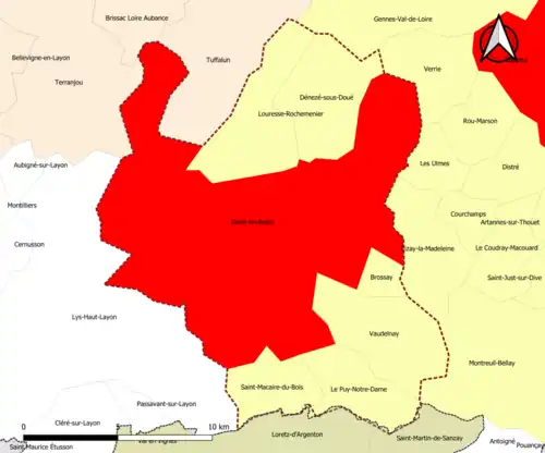 Localisation de l'aire d'attraction de Doué-en-Anjou dans le département de Maine-et-Loire. | |