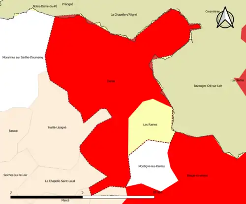 | Les Rairies | 49257 | Maine-et-Loire | commune de la couronne | 8,41 | 1 043 (2022) | 124 |
