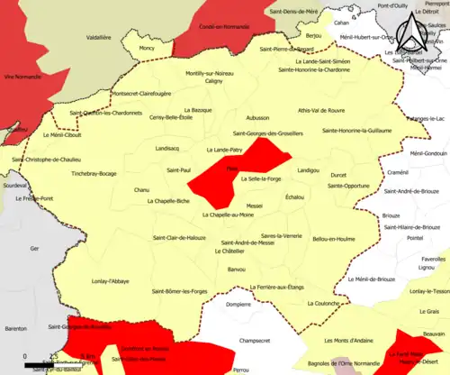 Localisation de l'aire d'attraction de Flers dans le département de l'Orne. | |