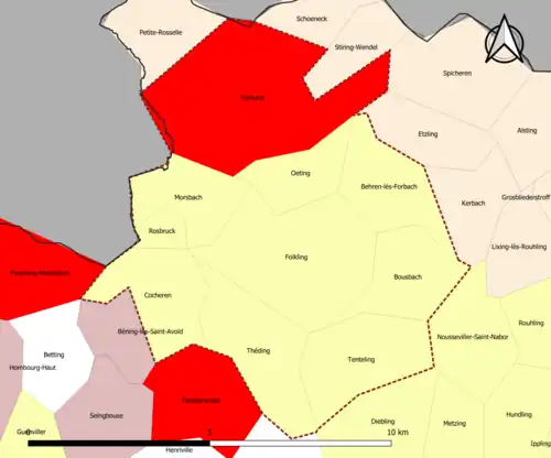 | Œting | 57521 | Moselle | commune de la couronne | 4,39 | 2 636 (2022) | 600 | |