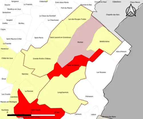 | Saint-Laurent-en-Grandvaux | 39487 | Jura | commune de la couronne | 17,57 | 1 818 (2022) | 103 |