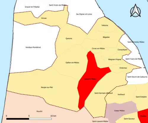 | Gaillan-en-Médoc | 33177 | Gironde | commune de la couronne | 42,02 | 2 376 (2022) | 57 | |