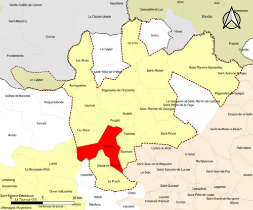 | Soumont | 34306 | Hérault | commune de la couronne | 11,04 | 243 (2022) | 22 |