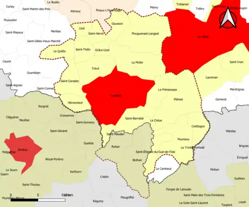 | Nombre de communes | 21 soit 19 (Côtes-d'Armor) + 2 (Morbihan) |