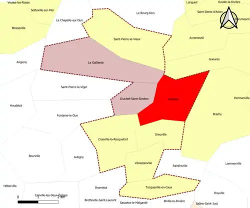 | Greuville | 76327 | Seine-Maritime | commune de la couronne | 2,96 | 374 (2022) | 126 | |