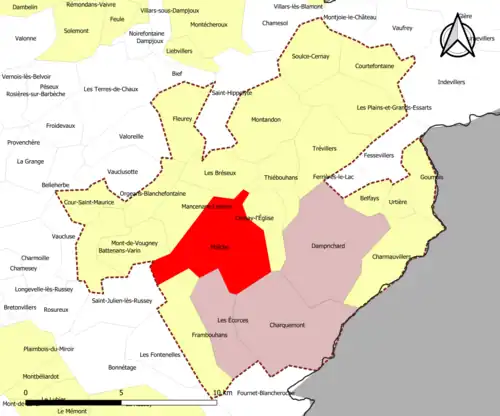 | Mont-de-Vougney | 25392 | Doubs | commune de la couronne | 7,03 | 195 (2022) | 28 | |