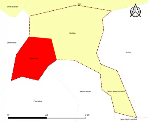 | Missiriac | 56133 | Morbihan | commune de la couronne | 13,47 | 1 192 (2022) | 88 | |