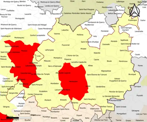 Localisation de l'aire d'attraction de Montauban dans le département de Tarn-et-Garonne. | |