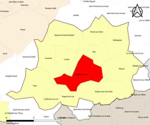 | Beaumont-Pied-de-Bœuf | 72028 | Sarthe | commune de la couronne | 24,68 | 476 (2022) | 19 | |