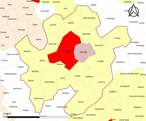 57483 | Moselle | commune-centre | 15,38 | 3 347 (2022) | 218 | |