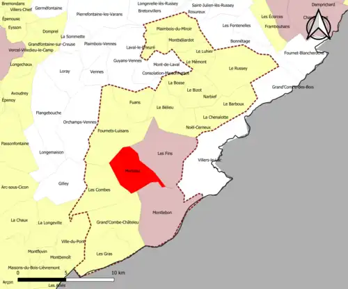 | Fuans | 25262 | Doubs | commune de la couronne | 11,10 | 472 (2022) | 43 | |