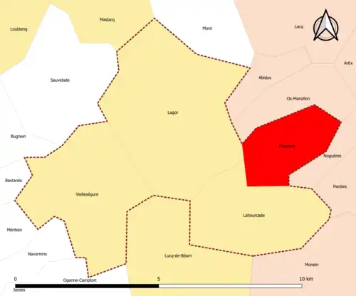 | Lagor | 64301 | Pyrénées-Atlantiques | commune de la couronne | 20,97 | 1 134 (2022) | 54 | |