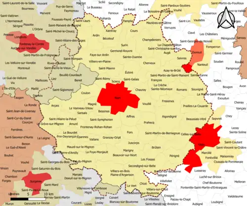 | Nombre de communes | 91 soit 82 (Deux-Sèvres) + 7 (Vendée) + 2 (Charente-Maritime) |