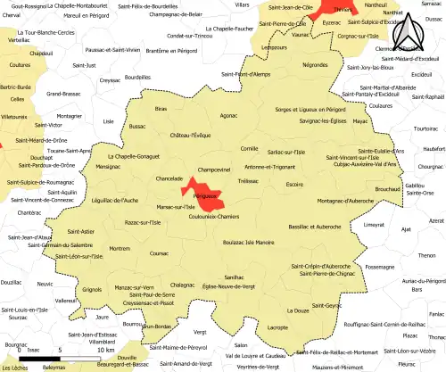 | Champcevinel | 24098 | Dordogne | commune de la couronne | 17,72 | 3 077 (2022) | 174 | |