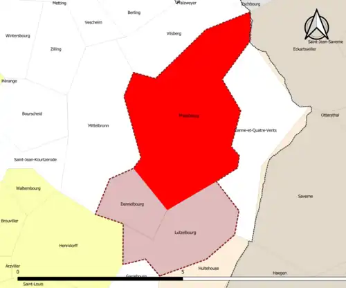 | Lutzelbourg | 57427 | Moselle | commune du pôle principal | 5,84 | 558 (2022) | 96 |