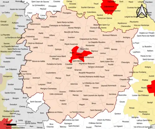 Localisation de l'aire d'attraction de Poitiers dans le département de la Vienne. | |