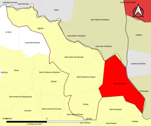 | Saint-Paulet-de-Caisson | 30290 | Gard | commune de la couronne | 16,88 | 1 894 (2022) | 112 |