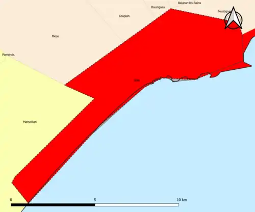 - ↑ « Aire d'attraction de Sète - Code officiel géographique », sur insee.fr (consulté le ).