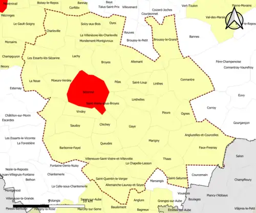 | Broyes | 51092 | Marne | commune de la couronne | 15,24 | 341 (2022) | 22 | |