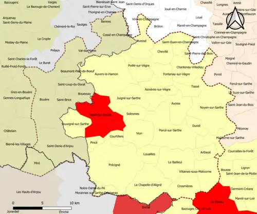 | Nombre de communes | 39 soit 29 (Sarthe) + 9 (Mayenne) + 1 (Maine-et-Loire)) |