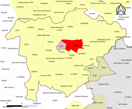 | Orval | 18172 | Cher | commune du pôle principal | 7,65 | 1 637 (2022) | 214 | |