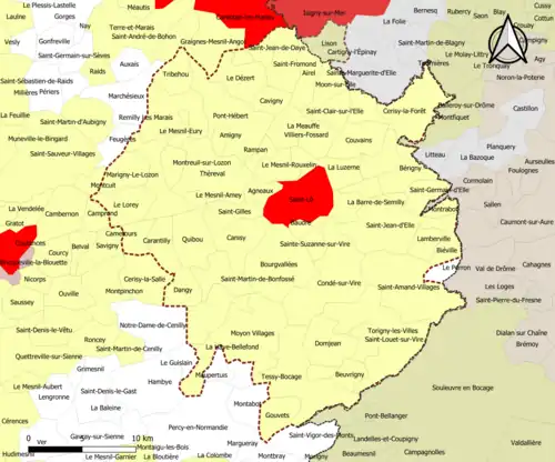 Localisation de l'aire d'attraction de Saint-Lô dans le département de la Manche. | |