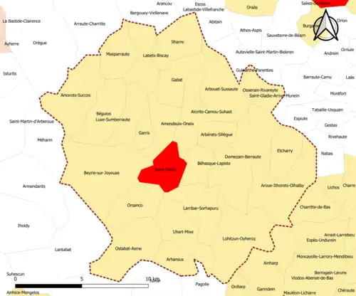 Localisation de l'aire d'attraction de Saint-Palais dans le département des Pyrénées-Atlantiques. | |