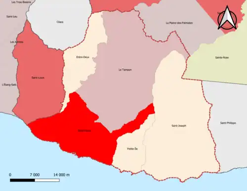 Localisation de l'aire d'attraction de Saint-Pierre - Le Tampon dans le département de La Réunion. | |
