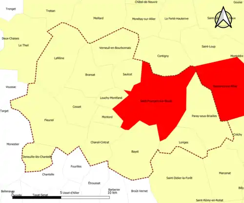 Localisation de l'aire d'attraction de Saint-Pourçain-sur-Sioule dans le département de l'Allier. | |