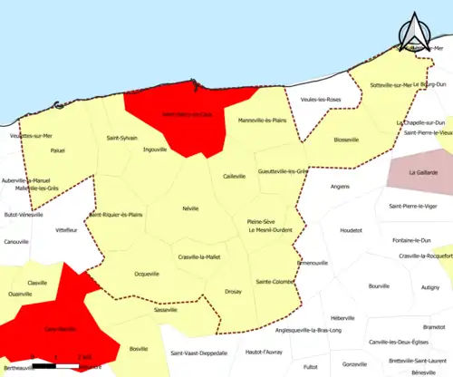 Localisation de l'aire d'attraction de Saint-Valery-en-Caux dans le département de la Seine-Maritime. | |