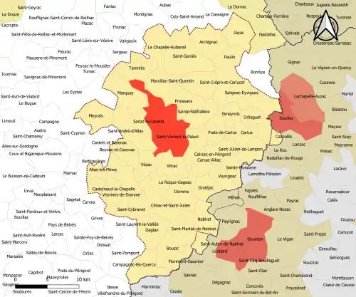 Localisation de l'aire d'attraction de Sarlat-la-Canéda dans le département de la Dordogne | |