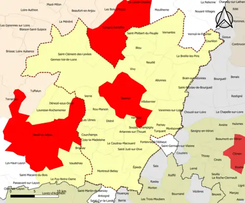 Localisation de l'aire d'attraction de Saumur dans le département de Maine-et-Loire. | |
