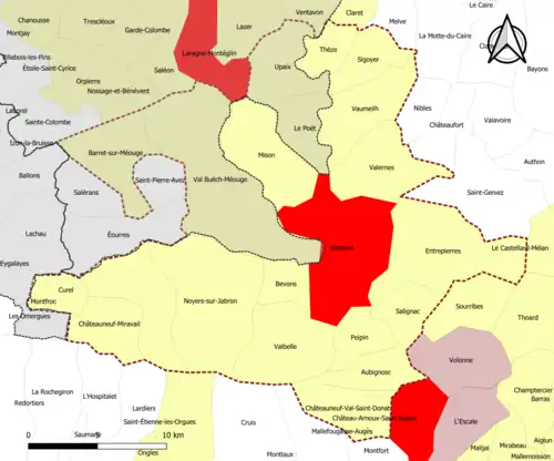 | Noyers-sur-Jabron | 04139 | Alpes-de-Haute-Provence | commune de la couronne | 56,58 | 527 (2022) | 9,3 | |