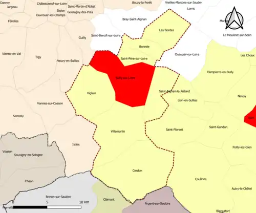 Localisation de l'aire d'attraction de Sully-sur-Loire dans le département du Loiret. | |