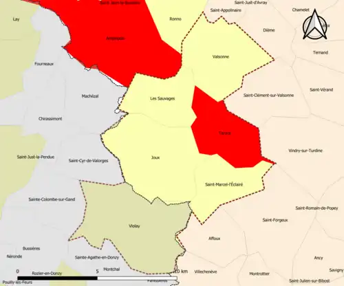 | Saint-Marcel-l'Éclairé | 69225 | Rhône | commune de la couronne | 11,88 | 568 (2022) | 48 | |