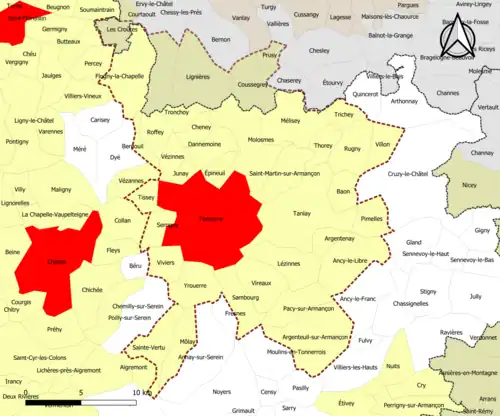 | Nombre de communes | 38 soit 33 (Yonne) + 5 (Aube) |