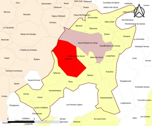 | Vernierfontaine | 25605 | Doubs | commune de la couronne | 13,28 | 485 (2022) | 37 | |