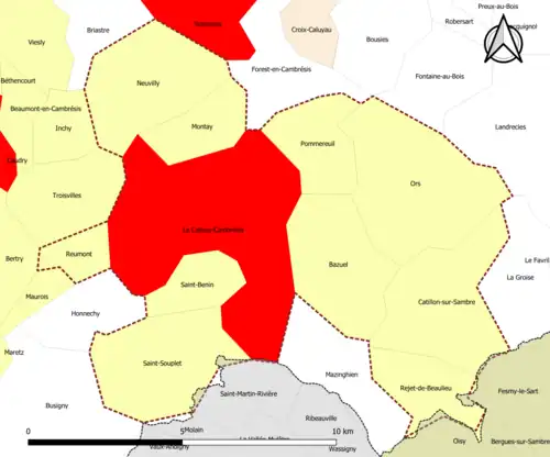 | Saint-Souplet | 59545 | Nord | commune de la couronne | 12,66 | 1 197 (2022) | 95 |