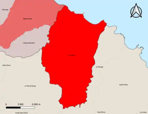 Localisation de l'aire d'attraction du Lorrain dans le département de la Martinique. | |